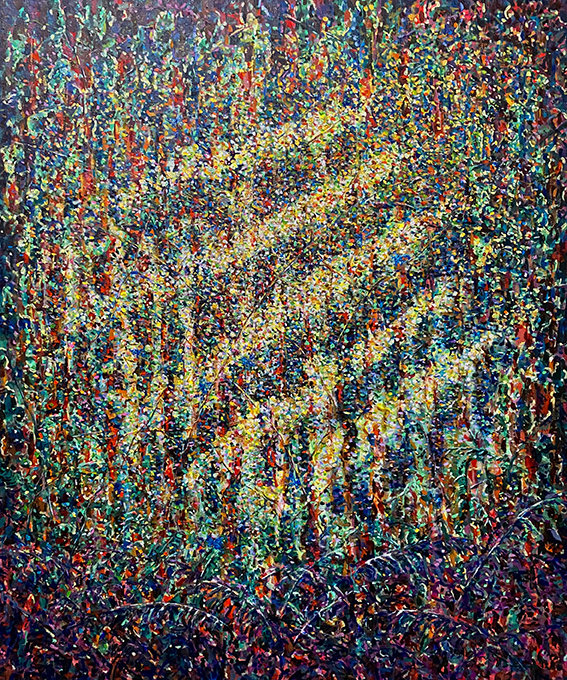 | De licht-schilderijen van Paul Dijkman symboliseren de bezieling van de natuur. Ons wonderlijke bestaan is een onbegrijpelijk, labyrintisch avontuur. |