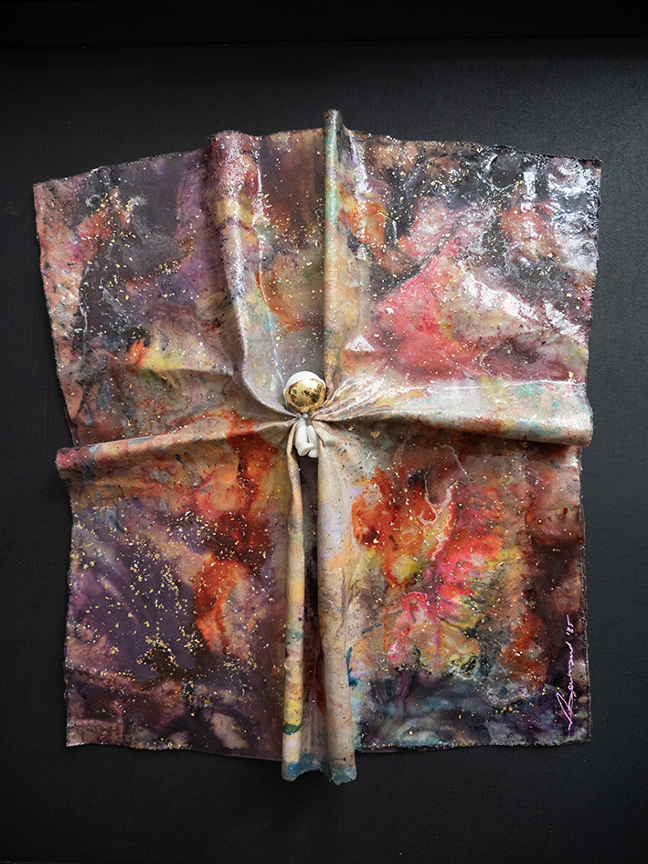 Bij Bertrand stap je een atelier binnen waar naar hartenlust wordt gecreëerd met verf, epoxy en bladgoud. Astronauten en het universum staan centraal.