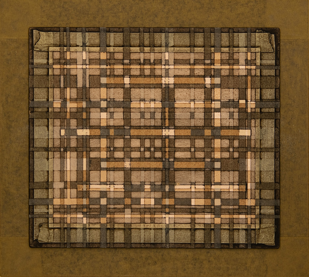 In de collage techniek, zoek ik een voorstelling, patroon, plattegrond, waarin een harmonie besloten ligt ontstaan door de tijd en de aandacht.